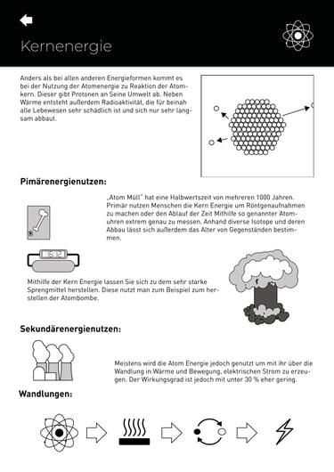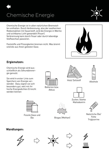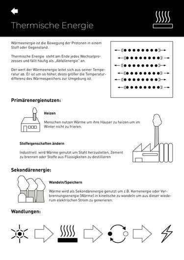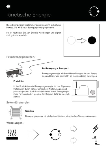 Interaktion Das Interaktive Plakat ist in der digitalen Version klickbar. Die Symbole neben den Energieformen führen zu näheren Informationen. Über einen Pfeil in der oberen linken Ecke geht es zurück zur Übersicht.