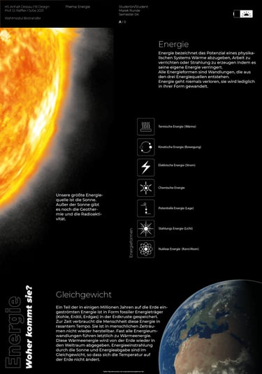 Energie Was ist Energie und wo kommt sie her? Die erste Seite des Plakats befasst sich mit der Energie, ihrem Ursprung und ihren Formen.
