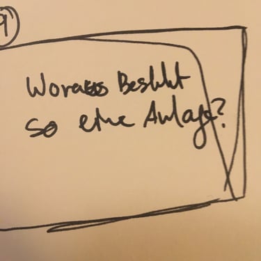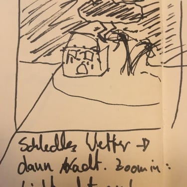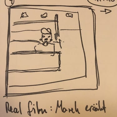 Ich bin methodisch vorgegangen und habe erst mal visuelle Metaphern für den gesprochenen Text gesucht. Bilder und Übergänge habe ich dann in einem Storyboard festgehalten und die einzelnen Bilder ausgeschnitten, so konnte ich sie frei auf dem Tisch organisieren und mir eine gute Reihenfolge überlegen. Der Film war in meinem Kopf und auf dem Tisch bereits fertig, bevor ich mit der erstem Grafik angefangen habe.